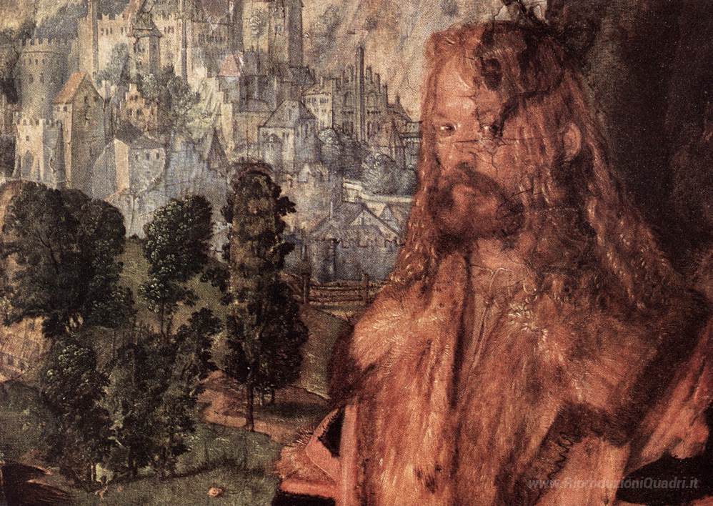 Ti offriamo una riproduzione artigianale su tela dell'opera famosa 'La Signora del festival du Rosaire (frammento)' di Albrecht Durer, dal Museo delle Riproduzioni.