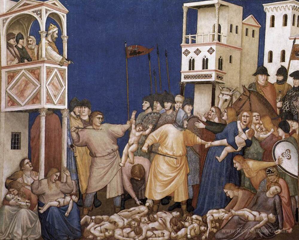 Ti offriamo una riproduzione artigianale su tela dell'opera famosa 'La Strage degli Innocenti' di Giotto, dal Museo delle Riproduzioni.