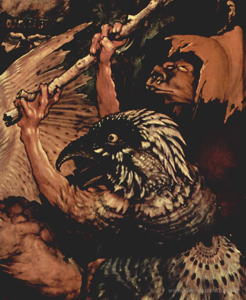 Ti offriamo una riproduzione artigianale su tela dell'opera famosa 'La tentazione di Sant'Antonio (particolare)' di Matthias Grünewald, dal Museo delle Riproduzioni.