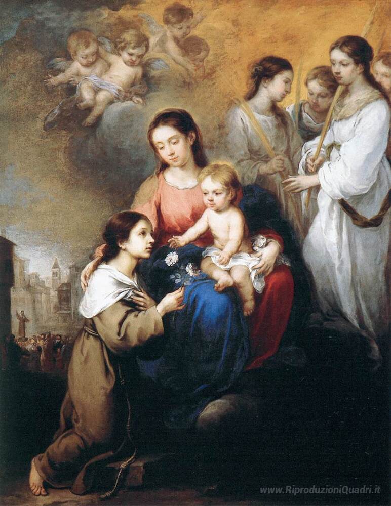Ti offriamo una riproduzione artigianale su tela dell'opera famosa 'La Vergine col Bambino e San Rosalina' di Bartolome Esteban Murillo, dal Museo delle Riproduzioni.