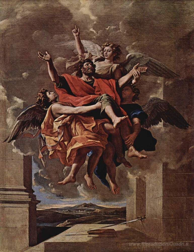 Ti offriamo una riproduzione artigianale su tela dell'opera famosa 'La Visione di St. Paul' di Nicolas Poussin, dal Museo delle Riproduzioni.