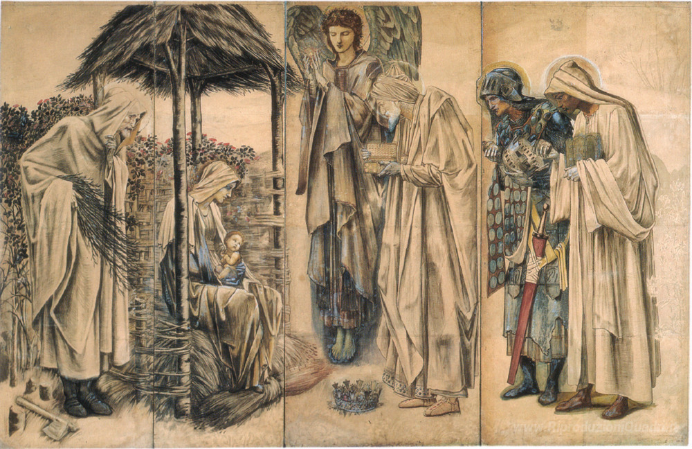 Ti offriamo una riproduzione artigianale su tela dell'opera famosa 'L'Adorazione dei Magi' di Edward Burne-Jones, dal Museo delle Riproduzioni.