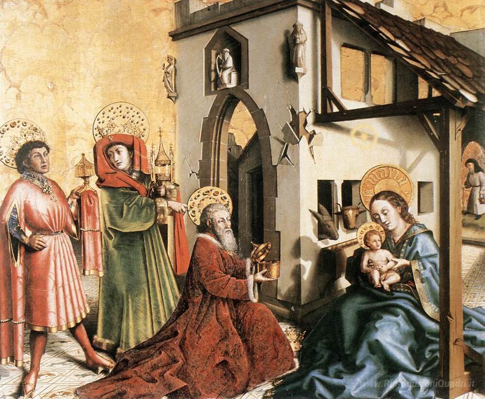 Ti offriamo una riproduzione artigianale su tela dell'opera famosa 'L'Adorazione dei Magi' di Konrad Witz, dal Museo delle Riproduzioni.