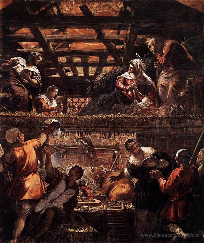 Ti offriamo una riproduzione artigianale su tela dell'opera famosa 'L'Adorazione dei pastori' di Tintoretto, dal Museo delle Riproduzioni.