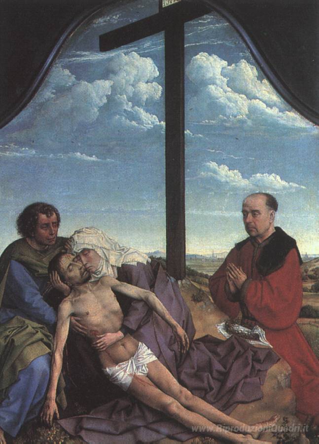 Ti offriamo una riproduzione artigianale su tela dell'opera famosa 'Lamento' di Rogier van der Weyden, dal Museo delle Riproduzioni.