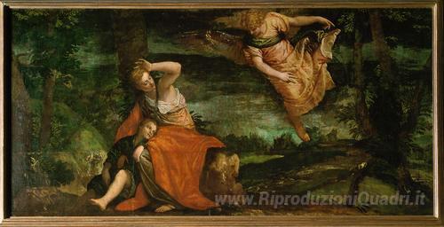 Ti offriamo una riproduzione artigianale su tela dell'opera famosa 'L'angelo appare ad Agar nel deserto' di Paolo Veronese, dal Museo delle Riproduzioni.