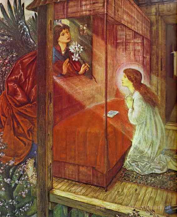 Ti offriamo una riproduzione artigianale su tela dell'opera famosa 'L'Annunciazione. Il Fiore di Dio' di Edward Burne-Jones, dal Museo delle Riproduzioni.