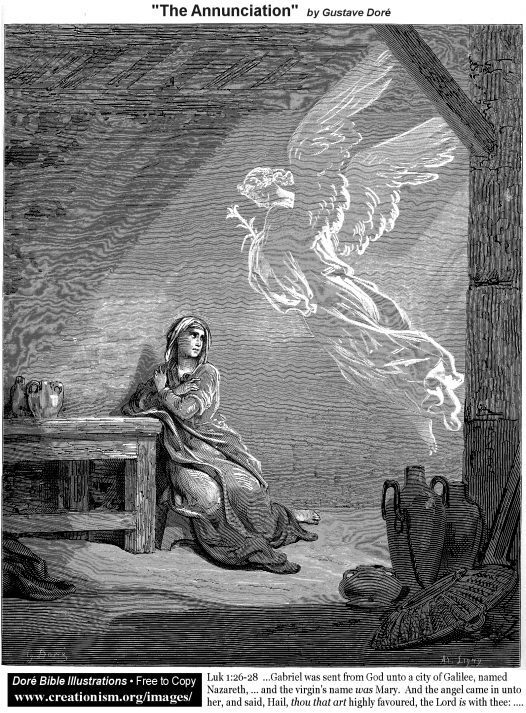 Ti offriamo una riproduzione artigianale su tela dell'opera famosa 'L'Annunciazione' di Gustave Dore, dal Museo delle Riproduzioni.