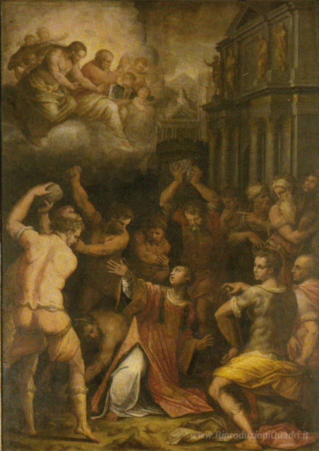 Ti offriamo una riproduzione artigianale su tela dell'opera famosa 'Lapidazione di Santo Stefano' di Giorgio Vasari, dal Museo delle Riproduzioni.