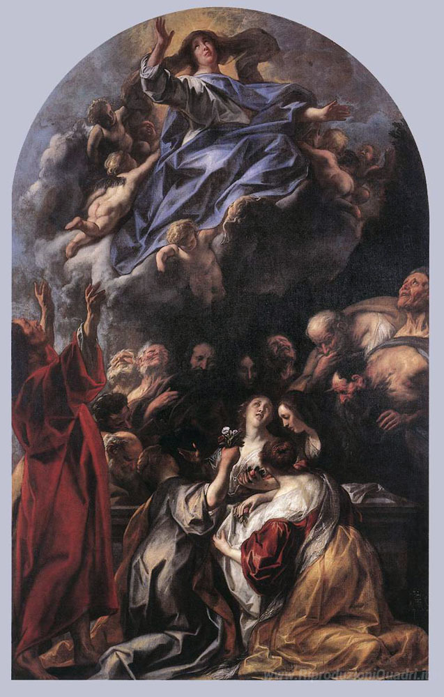 Ti offriamo una riproduzione artigianale su tela dell'opera famosa 'L'Assunzione della Vergine' di Jacob Jordaens, dal Museo delle Riproduzioni.