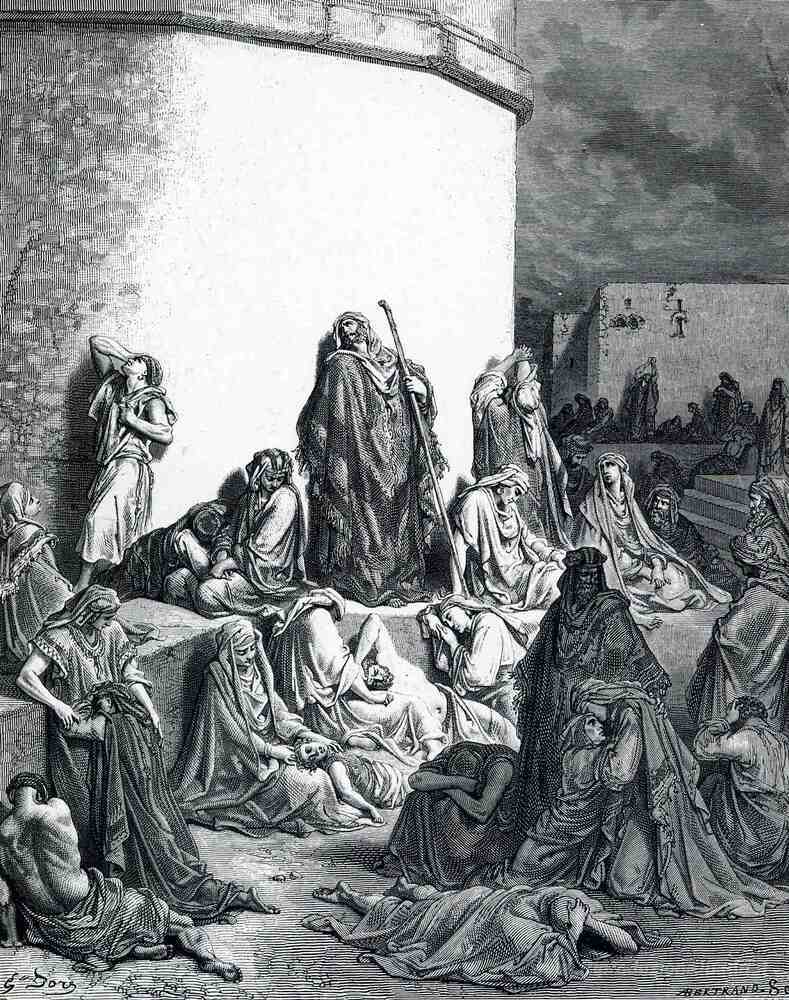 Ti offriamo una riproduzione artigianale su tela dell'opera famosa 'Le persone piangono la distruzione di Gerusalemme' di Gustave Dore, dal Museo delle Riproduzioni.