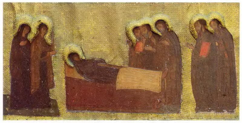 Ti offriamo una riproduzione artigianale su tela dell'opera famosa 'Le Virgin Holidays. Assunzione della Vergine.' di Nicholas Roerich, dal Museo delle Riproduzioni.