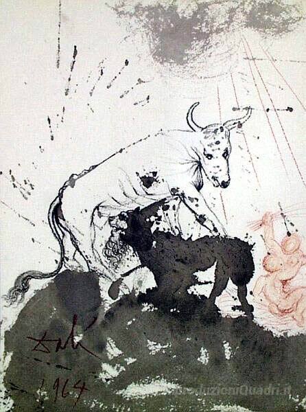 Ti offriamo una riproduzione artigianale su tela dell'opera famosa 'Leo bos quasi comedens paleas (Isaia 11: 7)' di Salvador Dali, dal Museo delle Riproduzioni.