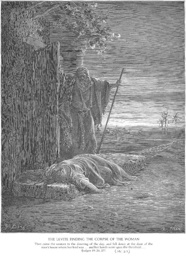 Ti offriamo una riproduzione artigianale su tela dell'opera famosa 'Levita Finds cadavere di una donna' di Gustave Dore, dal Museo delle Riproduzioni.