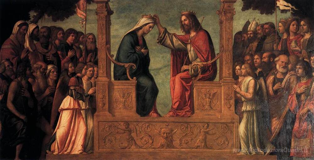 Ti offriamo una riproduzione artigianale su tela dell'opera famosa 'L'Incoronazione della Vergine' di Cima da Conegliano, dal Museo delle Riproduzioni.
