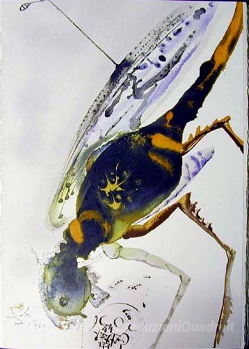 Ti offriamo una riproduzione artigianale su tela dell'opera famosa 'Locusta et Bruchus' di Salvador Dali, dal Museo delle Riproduzioni.