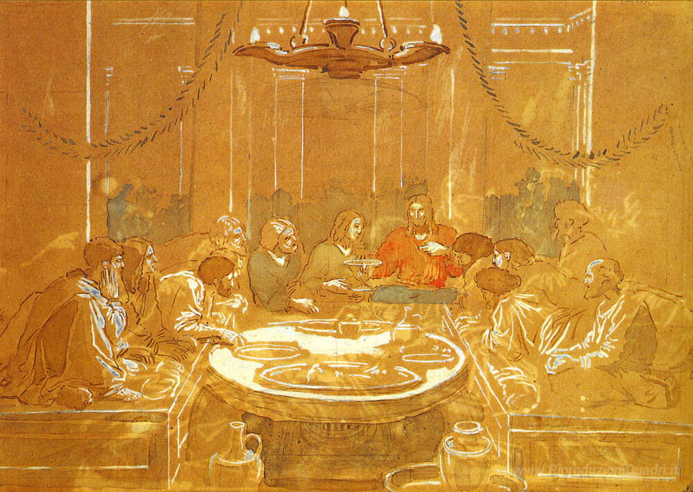 Ti offriamo una riproduzione artigianale su tela dell'opera famosa 'L'ultima Cena' di Alexander Ivanov, dal Museo delle Riproduzioni.