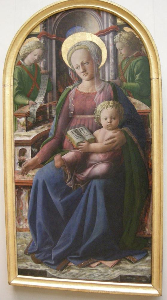 Ti offriamo una riproduzione artigianale su tela dell'opera famosa 'Madonna col Bambino in trono e due angeli' di Filippo Lippi, dal Museo delle Riproduzioni.