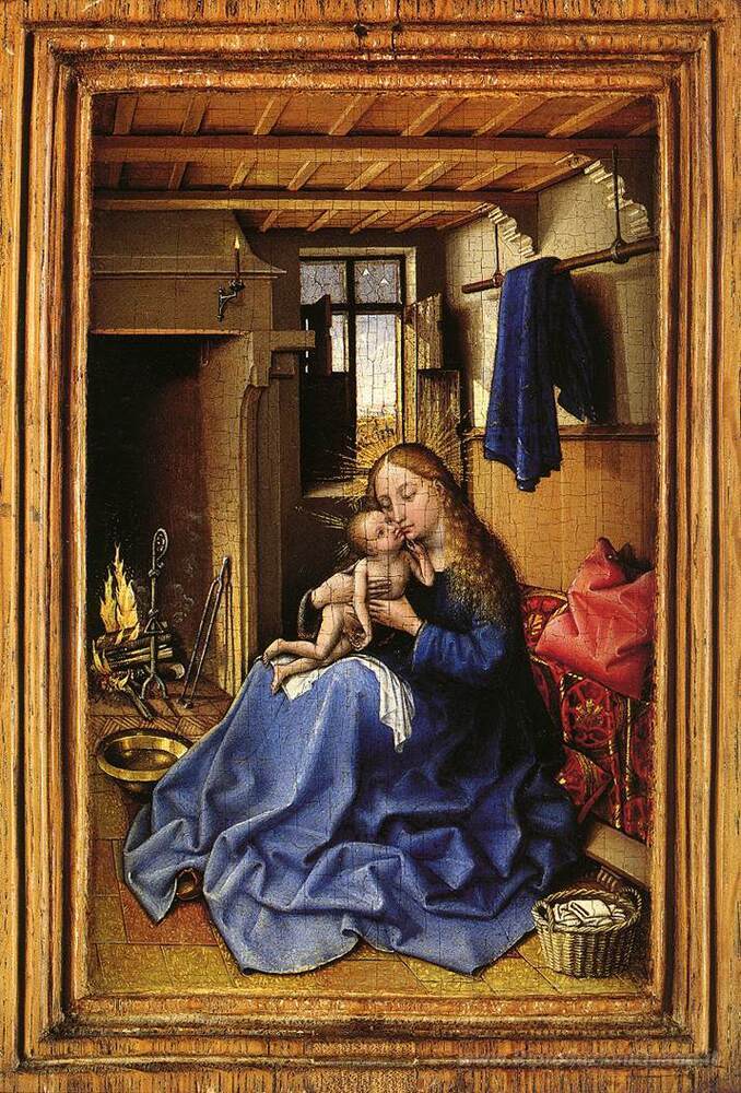 Scopri l'incanto dell'arte rinascimentale con il dipinto Madonna col Bambino in un interno di Robert Campin, un maestro fiammingo del XV secolo noto per la sua straordinaria abilità tecnica e il suo profondo senso del realismo. Le sue opere, caratterizzate da un’eccezionale attenzione ai dettagli e da una ricca tavolozza cromatica, offrono un’immersione unica nell’atmosfera spirituale e domestica del loro tempo, invitando l'osservatore a cogliere sfumature e suggestioni.