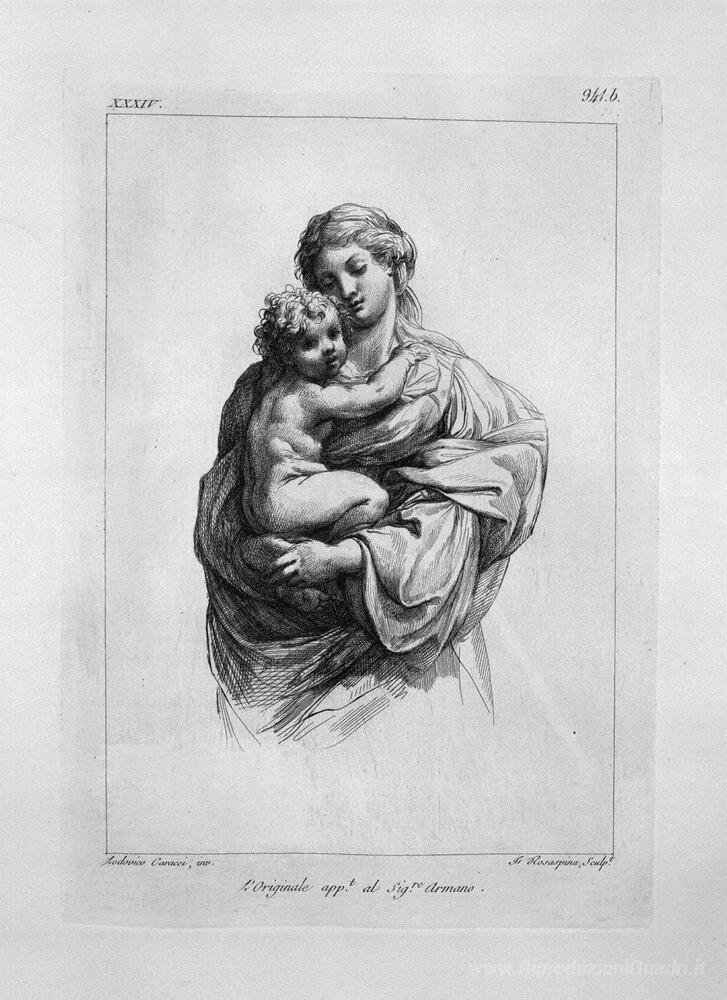 Ti offriamo una riproduzione artigianale su tela dell'opera famosa 'Madonna con Bambino' di Giovanni Battista Piranesi, dal Museo delle Riproduzioni.