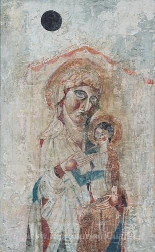 Ti offriamo una riproduzione artigianale su tela dell'opera famosa 'Madonna con bambino' di Gustavo Foppiani, dal Museo delle Riproduzioni.