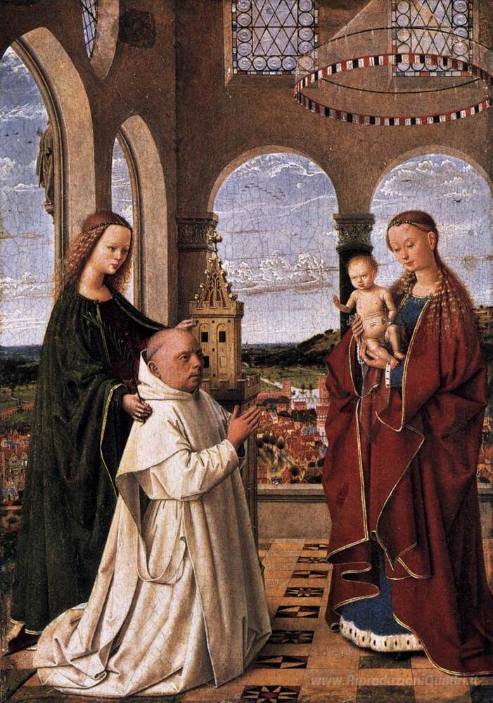 Ti offriamo una riproduzione artigianale su tela dell'opera famosa 'Madonna con Bambino' di Petrus Christus, dal Museo delle Riproduzioni.