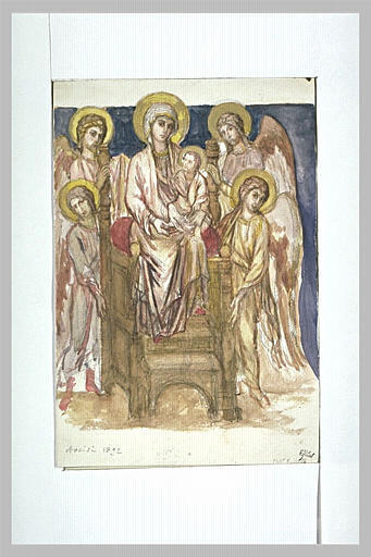 Ti offriamo una riproduzione artigianale su tela dell'opera famosa 'Madonna in trono con il Bambino e angeli' di Cimabue, dal Museo delle Riproduzioni.