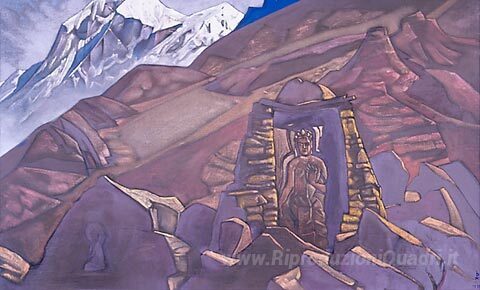 Ti offriamo una riproduzione artigianale su tela dell'opera famosa 'Maitreya sulla strada' di Nicholas Roerich, dal Museo delle Riproduzioni.