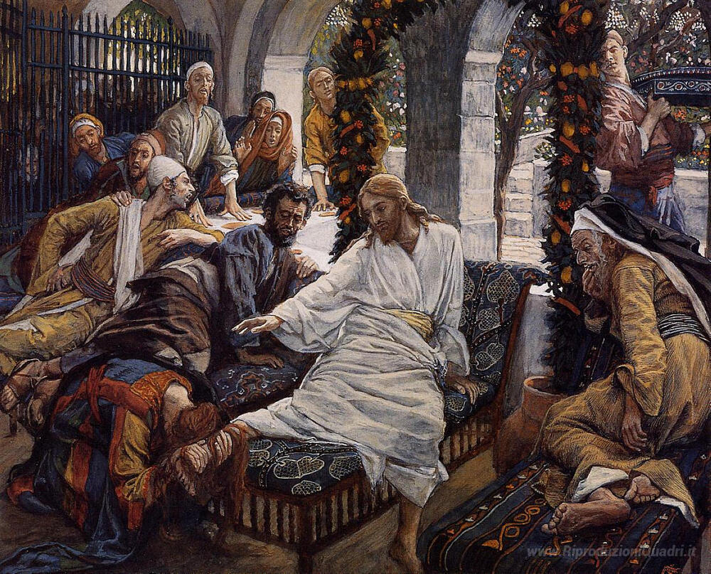 La maestria di Tissot si manifesta non solo nella sua abilità ritrattistica, ma anche nella scelta dei dettagli e nella composizione armoniosa, elementi che rendono questo dipinto ideale per valorizzare l'atmosfera di ogni spazio. Un'opera che trasmette un senso di sacralità e intimità, perfetta per chi desidera arricchire il proprio ambiente con un tocco di arte classica e profonda significanza.
