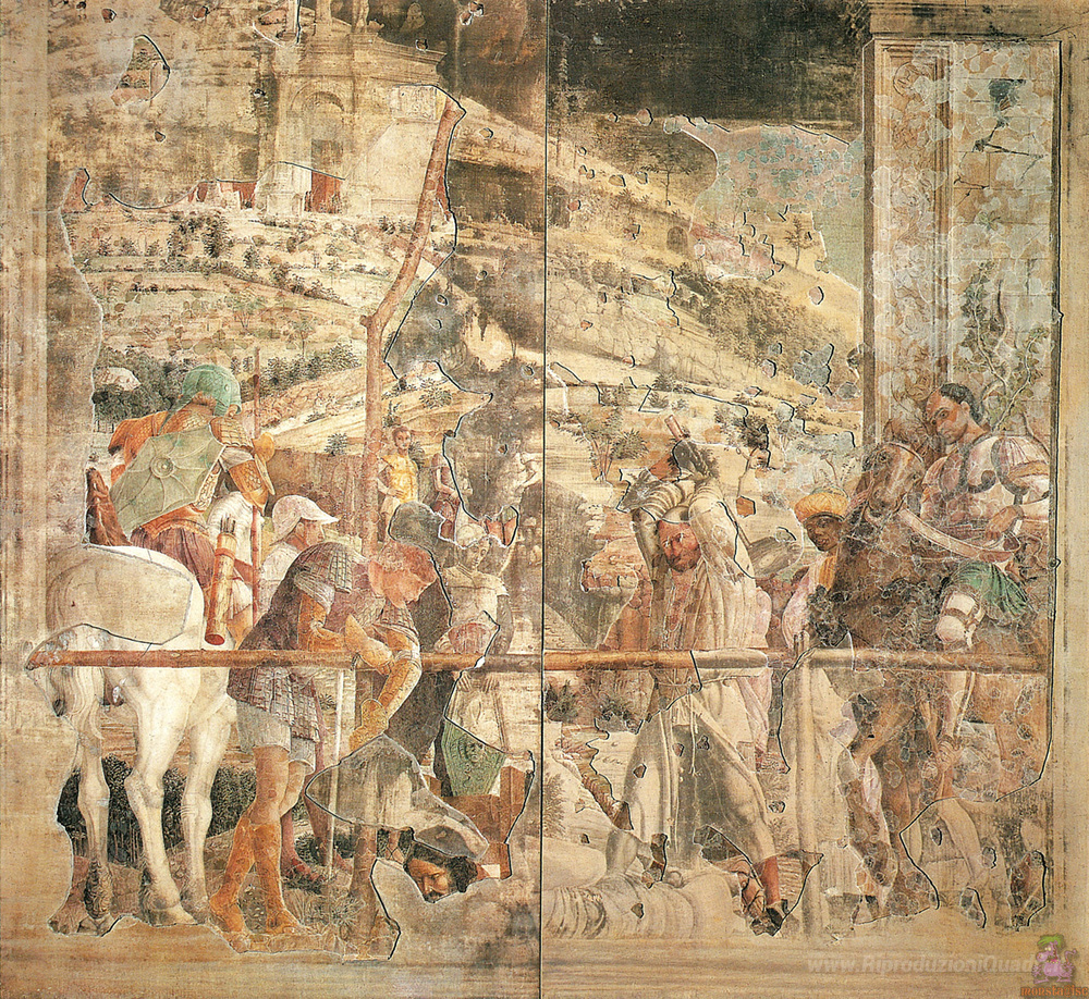 Ti offriamo una riproduzione artigianale su tela dell'opera famosa 'Martirio di San Giacomo' di Andrea Mantegna, dal Museo delle Riproduzioni.