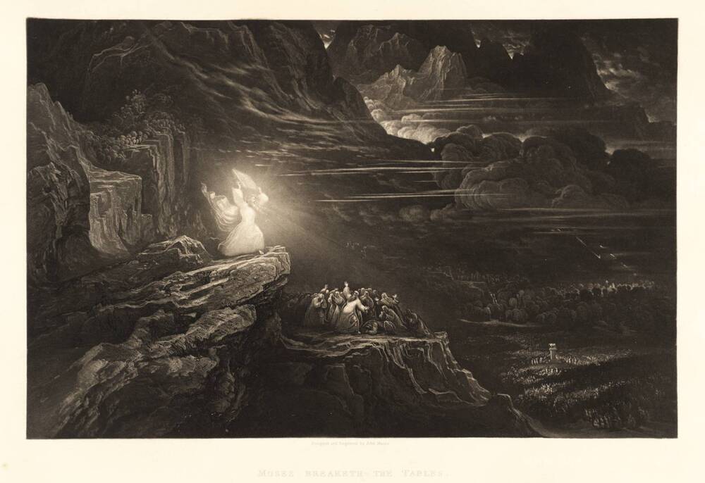 Ti offriamo una riproduzione artigianale su tela dell'opera famosa 'Mosè spezza le tavole' di John Martin, dal Museo delle Riproduzioni.