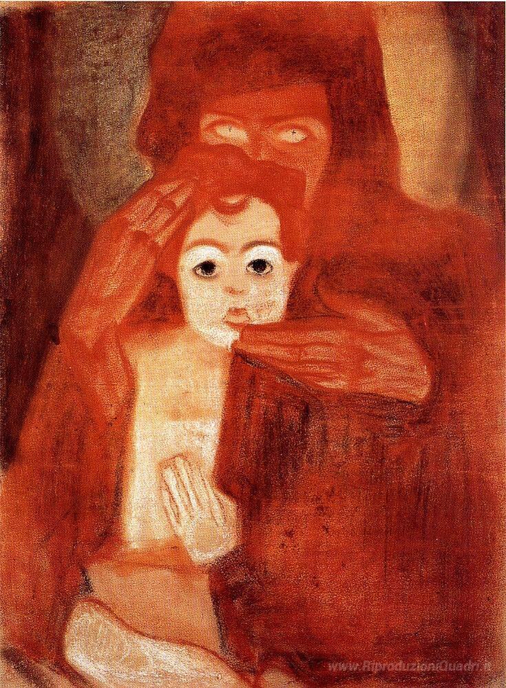 Ti offriamo una riproduzione artigianale su tela dell'opera famosa 'Mother and Child (Madonna)' di Egon Schiele, dal Museo delle Riproduzioni.