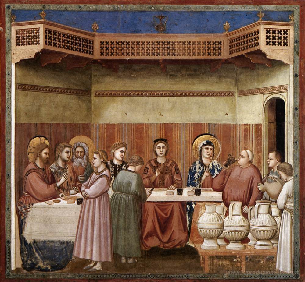 Ti offriamo una riproduzione artigianale su tela dell'opera famosa 'Nozze di Cana' di Giotto, dal Museo delle Riproduzioni.