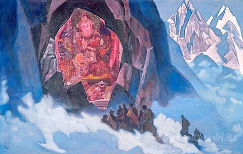 Ti offriamo una riproduzione artigianale su tela dell'opera famosa 'Ordine di Rigden Jyepo' di Nicholas Roerich, dal Museo delle Riproduzioni.