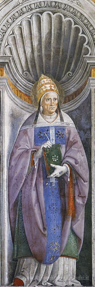 Ti offriamo una riproduzione artigianale su tela dell'opera famosa 'Papa Antero' di Pietro Perugino, dal Museo delle Riproduzioni.