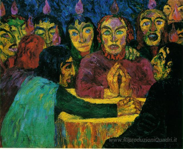 Ti offriamo una riproduzione artigianale su tela dell'opera famosa 'Pentecast' di Emil Nolde, dal Museo delle Riproduzioni.