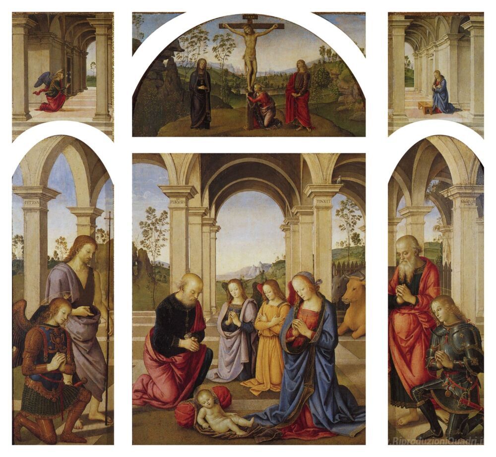 Ti offriamo una riproduzione artigianale su tela dell'opera famosa 'Polittico Albani Torlonia' di Pietro Perugino, dal Museo delle Riproduzioni.
