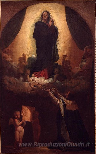 Ti offriamo una riproduzione artigianale su tela dell'opera famosa 'Primo pensiero del voto di Luigi XIII' di Jean Auguste Dominique Ingres, dal Museo delle Riproduzioni.