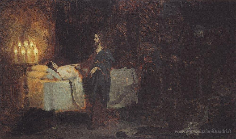 Ti offriamo una riproduzione artigianale su tela dell'opera famosa 'Raccolta di Giairo figlia' di Ilya Repin, dal Museo delle Riproduzioni.