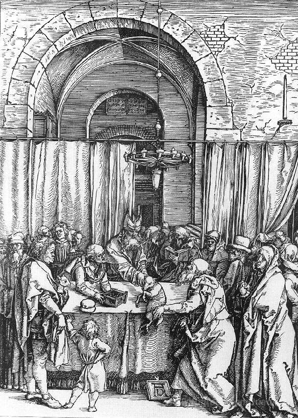 Ti offriamo una riproduzione artigianale su tela dell'opera famosa 'Rifiuto di Joachim`s Offerta' di Albrecht Durer, dal Museo delle Riproduzioni.