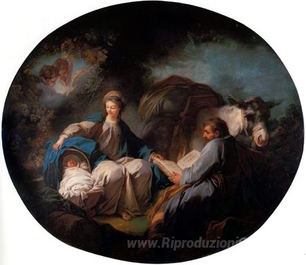 Ti offriamo una riproduzione artigianale su tela dell'opera famosa 'Riposo durante la fuga in Egitto' di Jean-Honore Fragonard, dal Museo delle Riproduzioni.