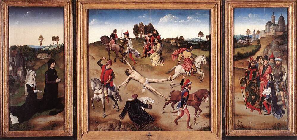 Ti offriamo una riproduzione artigianale su tela dell'opera famosa 'S. Ippolito Trittico' di Dirk Bouts, dal Museo delle Riproduzioni.