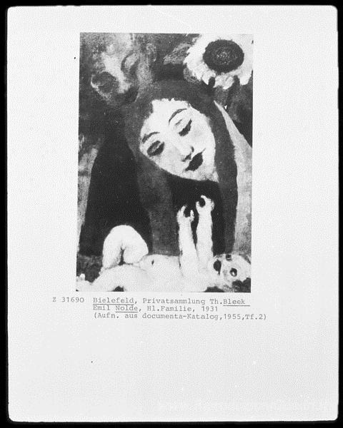 Ti offriamo una riproduzione artigianale su tela dell'opera famosa 'Sacra Famiglia' di Emil Nolde, dal Museo delle Riproduzioni.