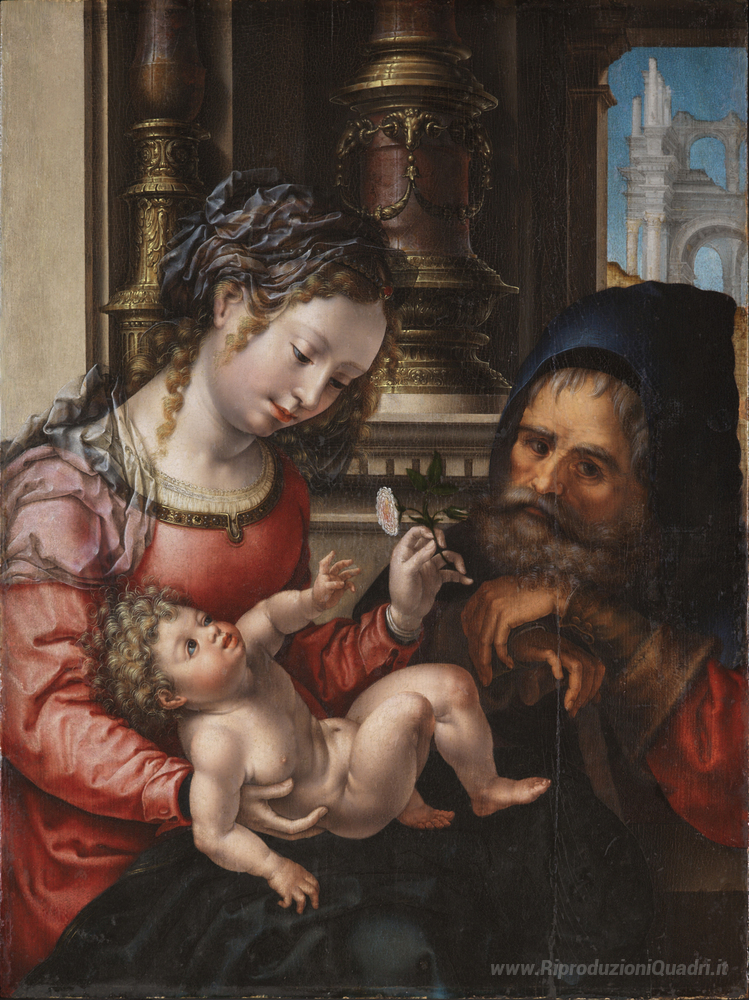 Ti offriamo una riproduzione artigianale su tela dell'opera famosa 'Sacra famiglia' di Mabuse, dal Museo delle Riproduzioni.