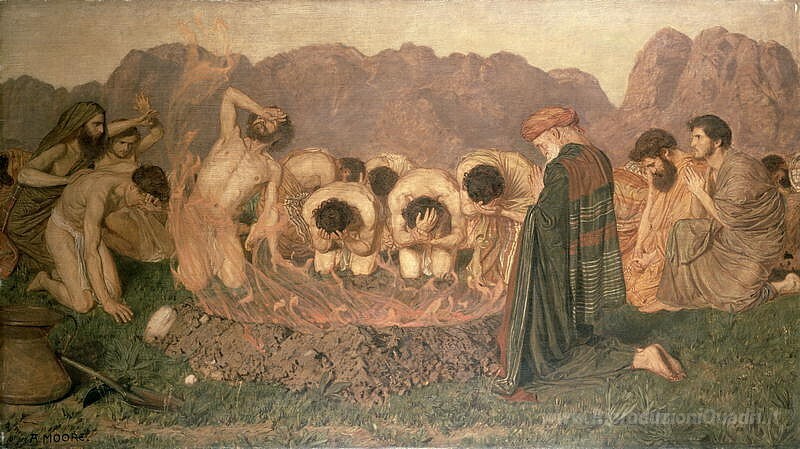 Ti offriamo una riproduzione artigianale su tela dell'opera famosa 'Sacrificio di Elia' di Albert Joseph Moore, dal Museo delle Riproduzioni.