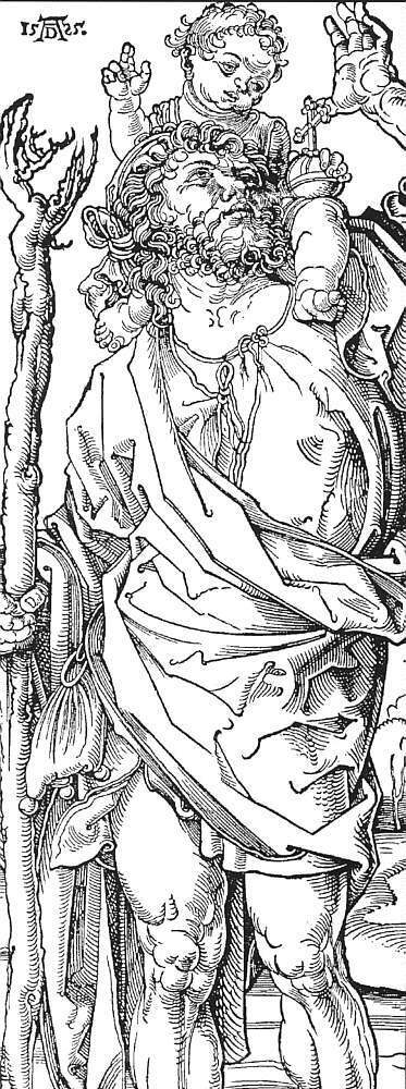 Ti offriamo una riproduzione artigianale su tela dell'opera famosa 'San Cristoforo Portare Gesù Bambino' di Albrecht Durer, dal Museo delle Riproduzioni.