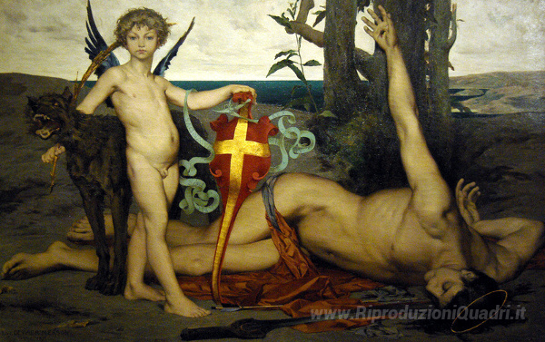 Ti offriamo una riproduzione artigianale su tela dell'opera famosa 'San Edmondo il Re Martire d'Inghilterra' di Luc-Olivier Merson, dal Museo delle Riproduzioni.