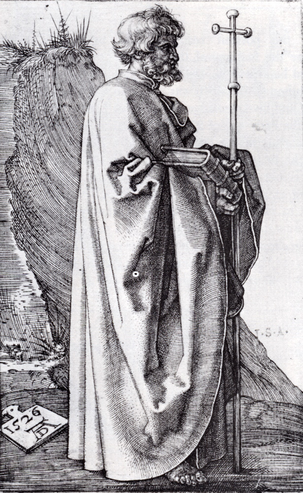 Ti offriamo una riproduzione artigianale su tela dell'opera famosa 'San Filippo' di Albrecht Durer, dal Museo delle Riproduzioni.
