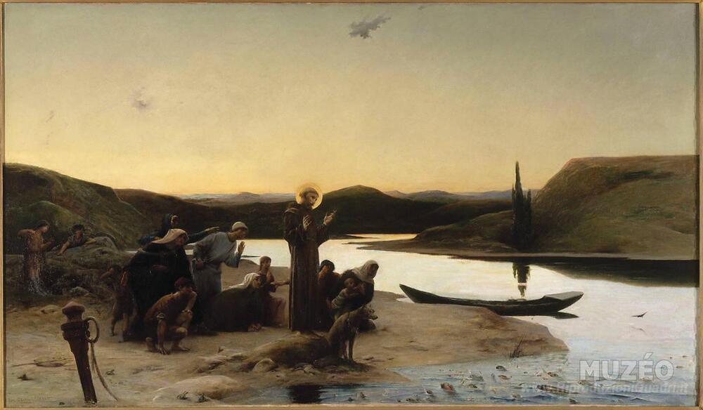 Ti offriamo una riproduzione artigianale su tela dell'opera famosa 'San Francesco d'Assisi predica ai pesci' di Luc-Olivier Merson, dal Museo delle Riproduzioni.