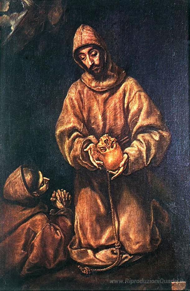 Ti offriamo una riproduzione artigianale su tela dell'opera famosa 'San Francesco e il fratello Rufus' di El Greco, dal Museo delle Riproduzioni.